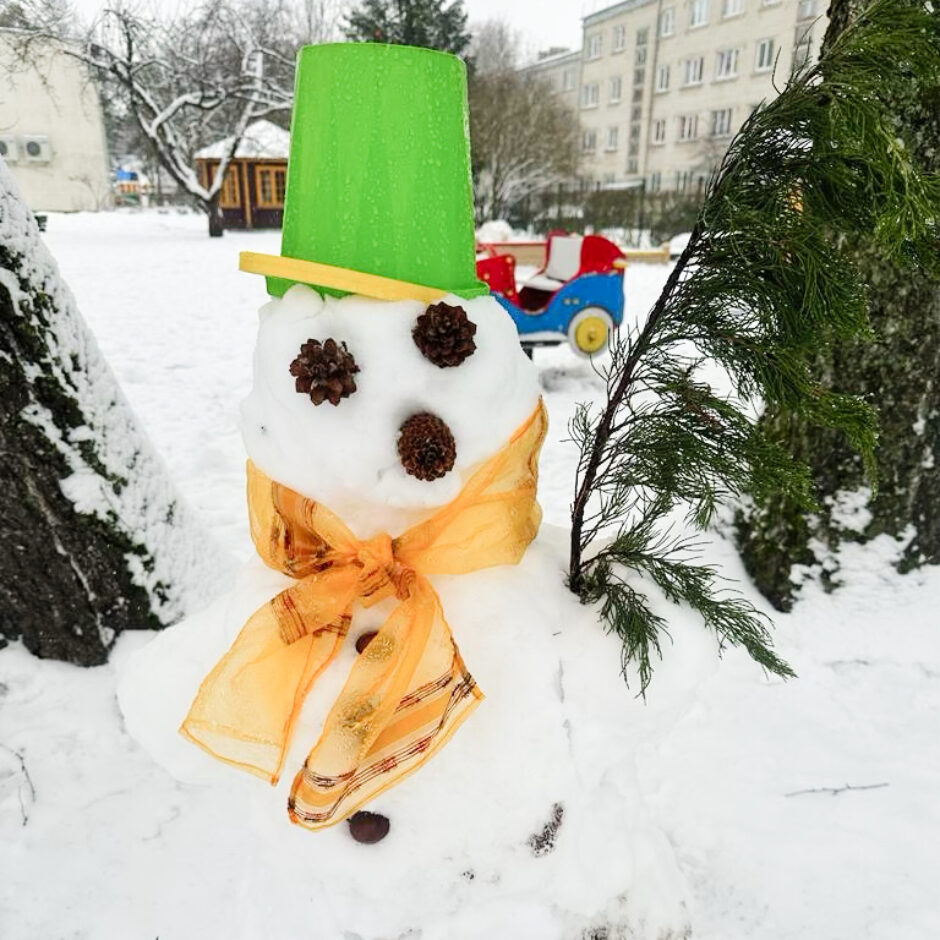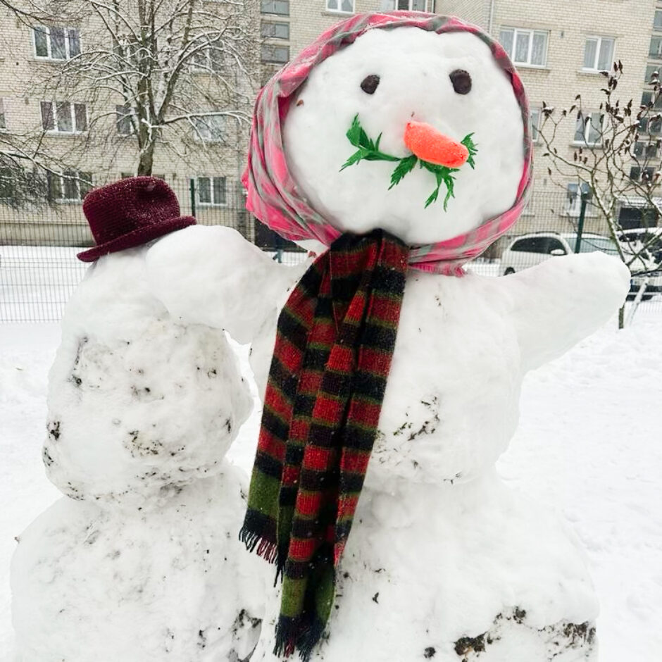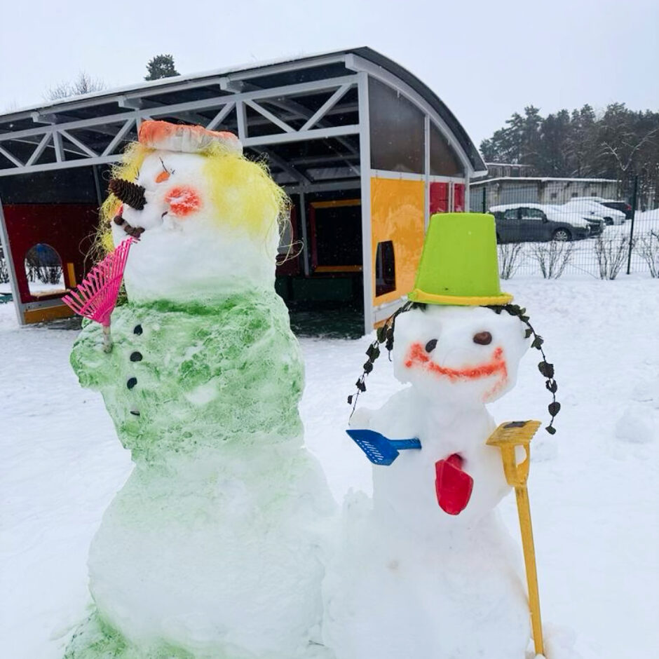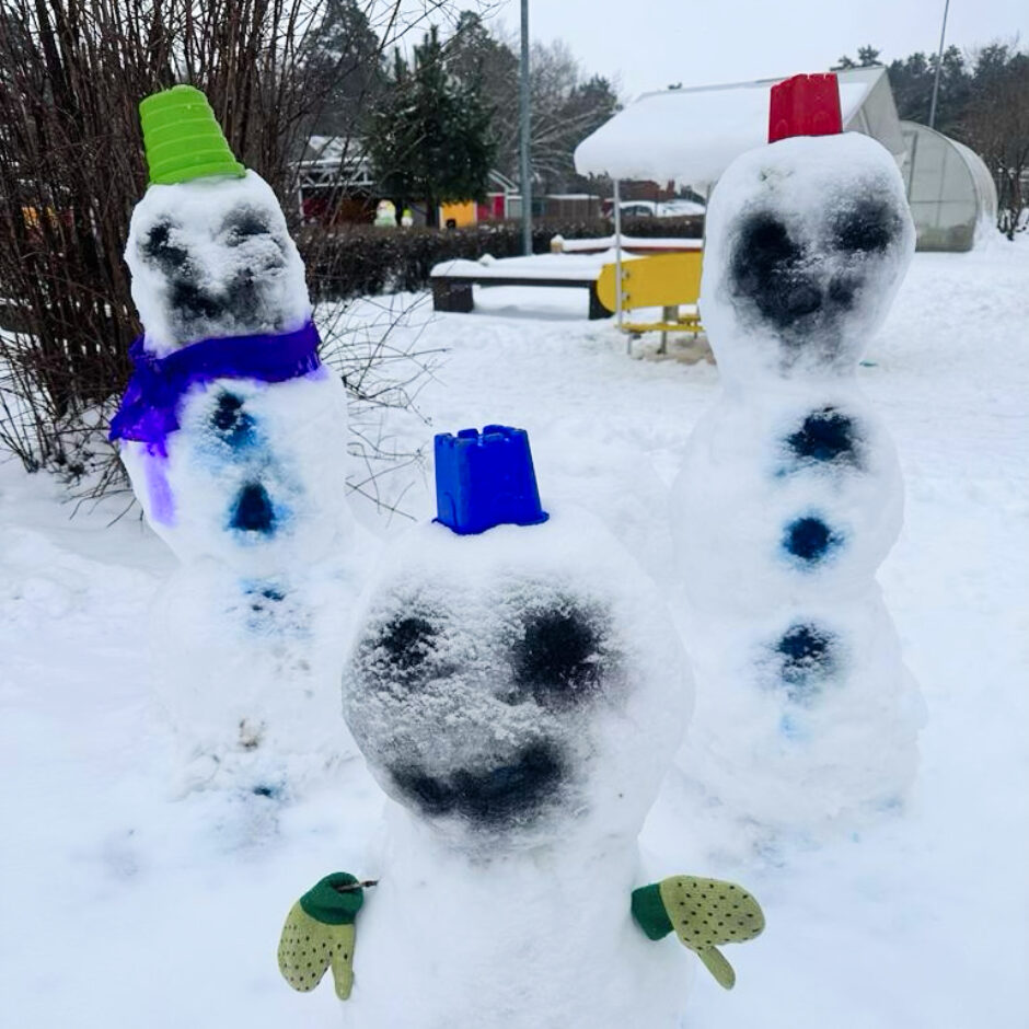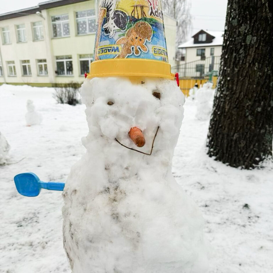 Pagalmā sākās liela rosība – gan mazie , gan lielie bērni kopā ar skolotājām ļāvās rotaļām ar sniegu, veļot un ceļot brašus sniegavīrus.