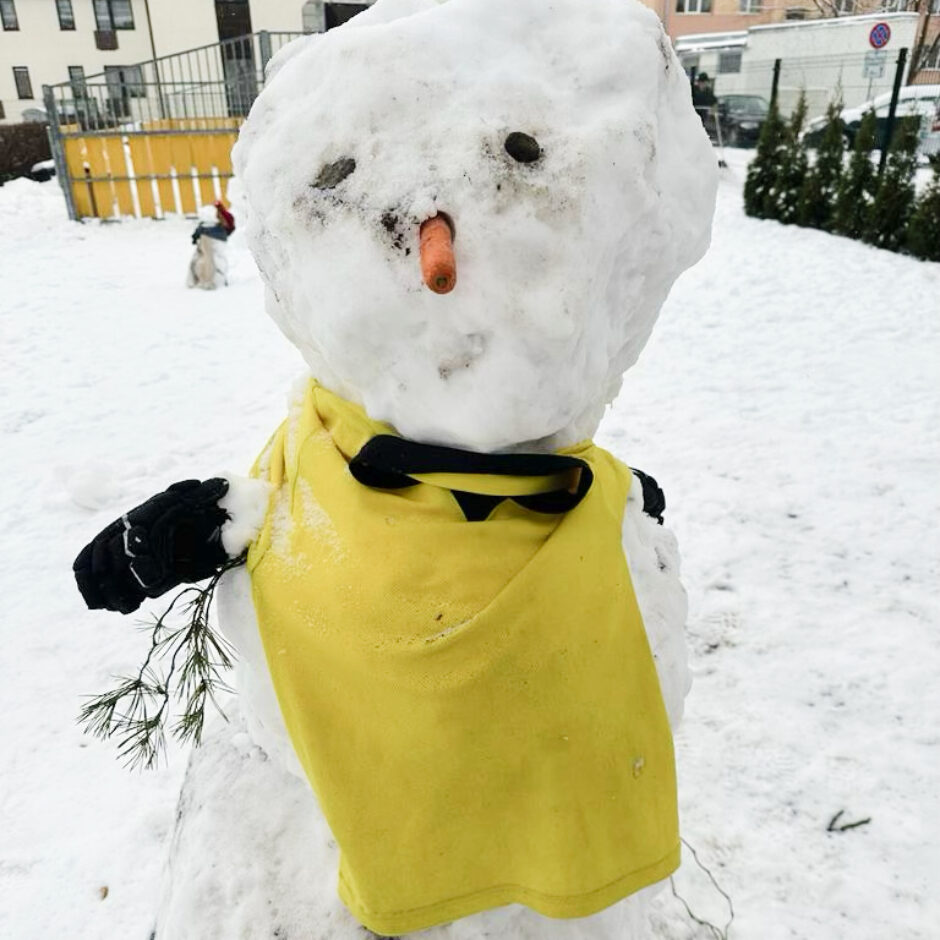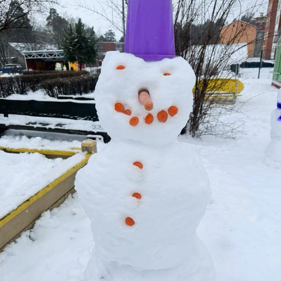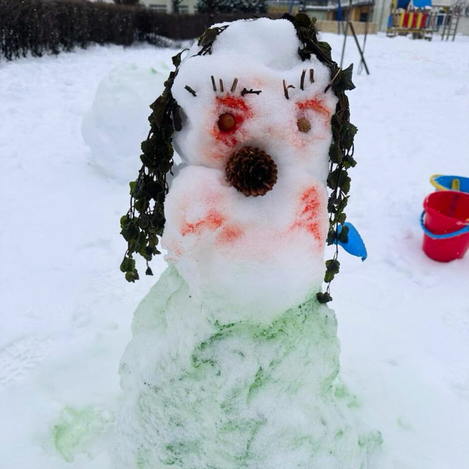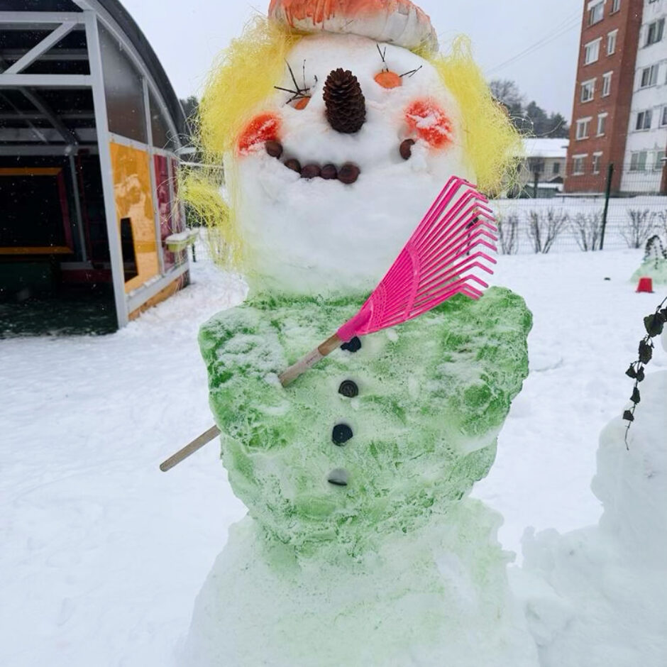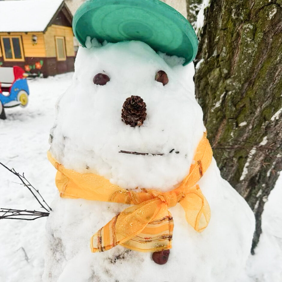 Pagalmā sākās liela rosība – gan mazie , gan lielie bērni kopā ar skolotājām ļāvās rotaļām ar sniegu, veļot un ceļot brašus sniegavīrus.